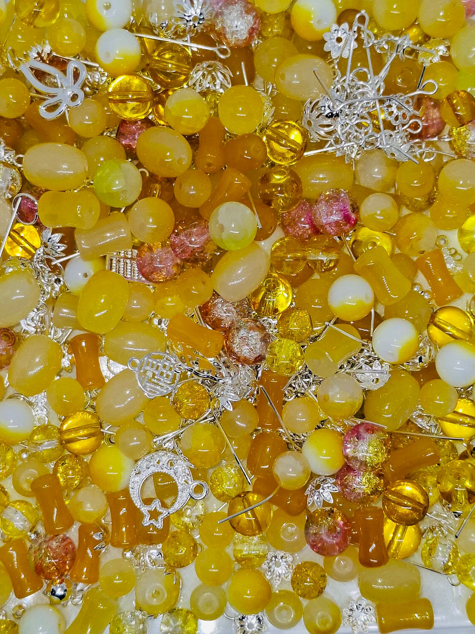 A glass bead mix is a treasure trove of elegance and versatility, perfect for adding depth and brilliance to any bead-craft or jewellery piece! These mixes typically combine a variety of glass beads—smooth rounds, faceted gems, and shimmering finishes.
